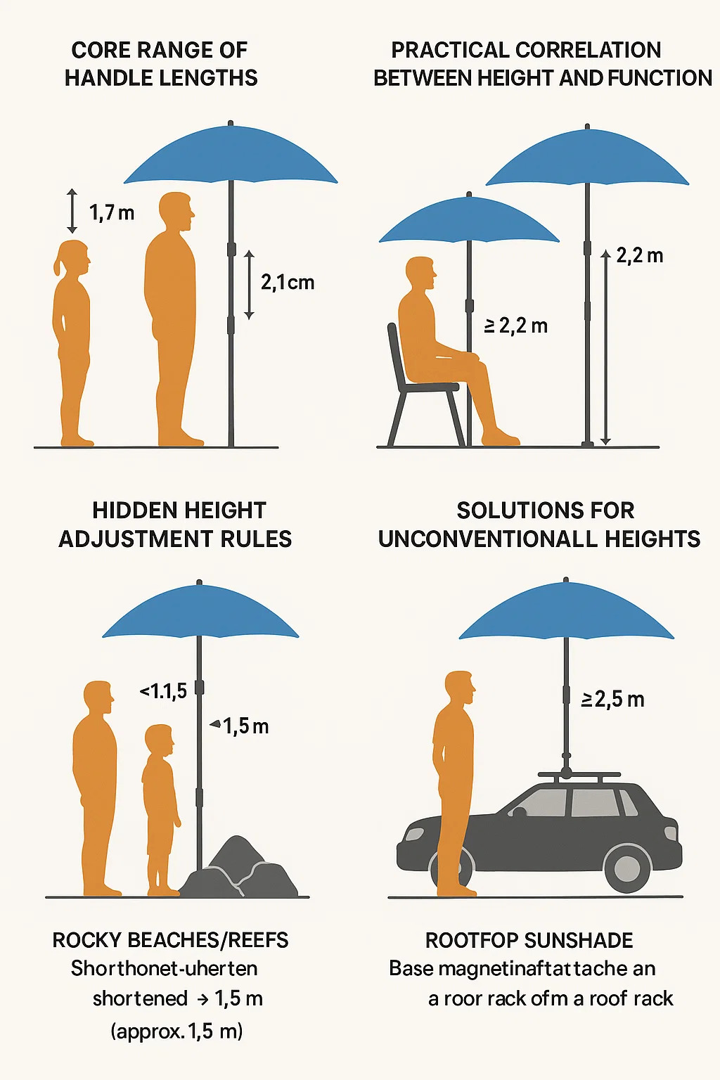 Următoarea este o analiză practică a Umbrelă de plajă înălțimi, bazate pe scenarii de utilizare comune și principiile de proiectare ergonomică: